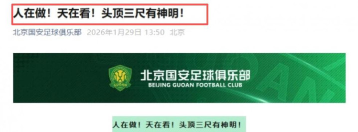然而,在中国足协公布罚单之后,北京国安官方选择硬刚,在社媒上写道,“人在做,天在看!头顶三尺有神明”!毫无疑问,北京国安对足协的处罚感到极其不满,事情会如何发酵,也让我们拭目以待。